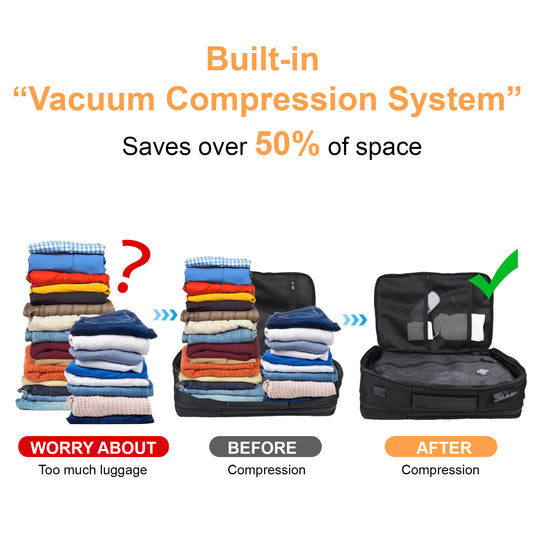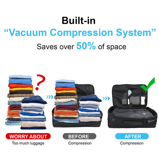 Zurligi Air Vacuum Backpack for Travel - 50L Expandable Carry On Backpack for Airplane, Vacuum Compression with Pump, USB Port, Anti-Theft, for Business, College, Laptop, Camping, Weekender