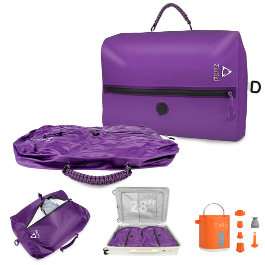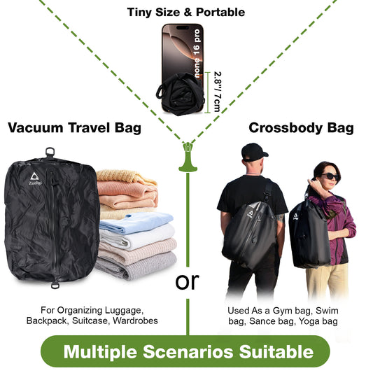 Zurligi Vacuum Bags for Travel with Pump, Vacuum Compression Bag with Adjustable Shoulder Strap, IP67 Reusable Vacuum Packing Cubes for Luggage, Backpack, Suitcase, Yoga, Swim, Beach