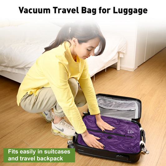 Zurligi Vacuum Compression Bags with Pump for Travel - Waterproof, Reusable, Removable Handle, Portable Travel Pack Vacuum Bag Kit for Camping, Gym, Beach, Moving (2pcs)